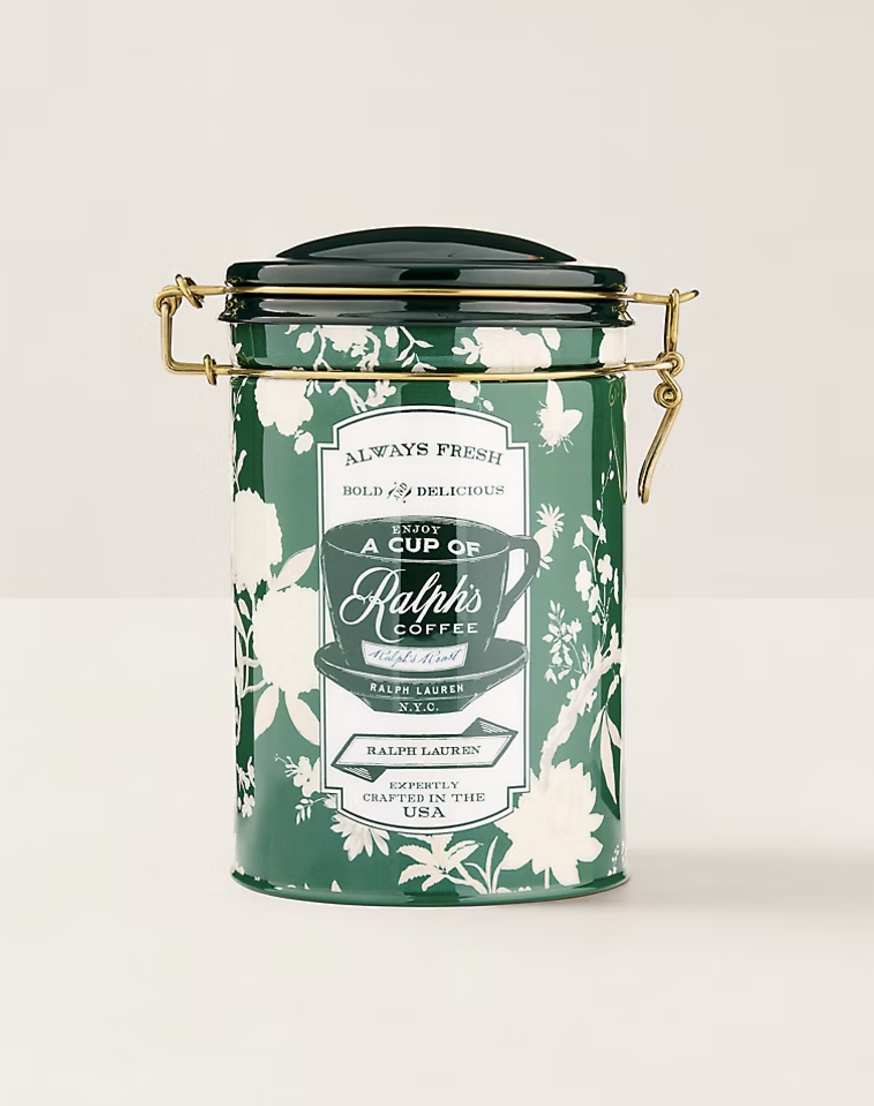 Indulge in Ralph’s Coffee Canister featuring print inspired by the flagship location in NYC.
