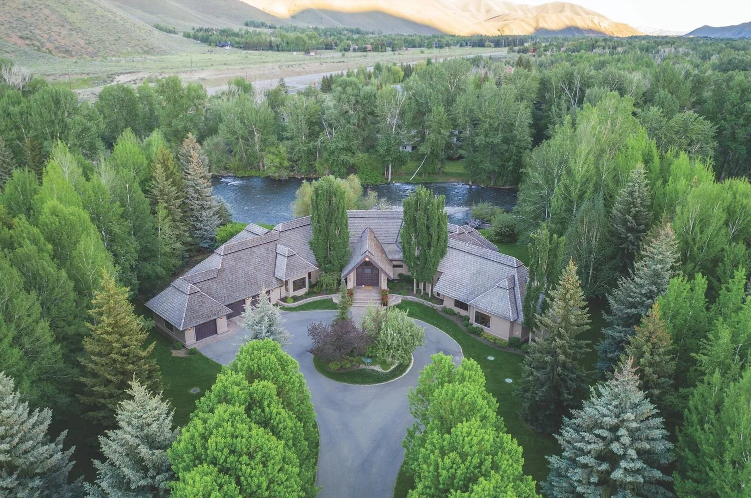 Perfectly situated on 2.77 acres of exquisite river front property, this home sits amongst the finest estates in the Sun Valley Area.